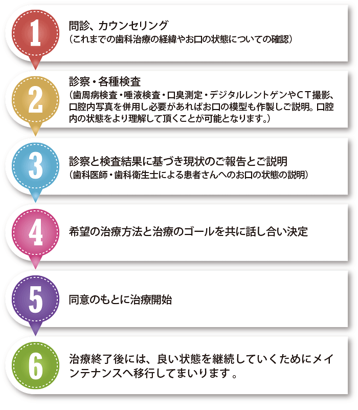 むし歯や歯周病だけではなく歯を失ってしまった場合など、これからの治療や予防処置における内容説明はとても大切であると考えています。